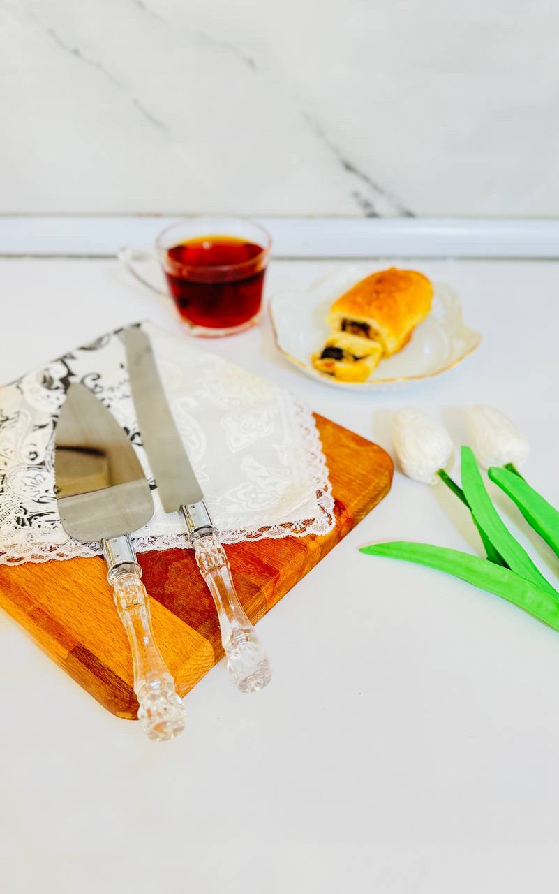 ست کارد و کفگیر کیک دسته کریستالی شفاف