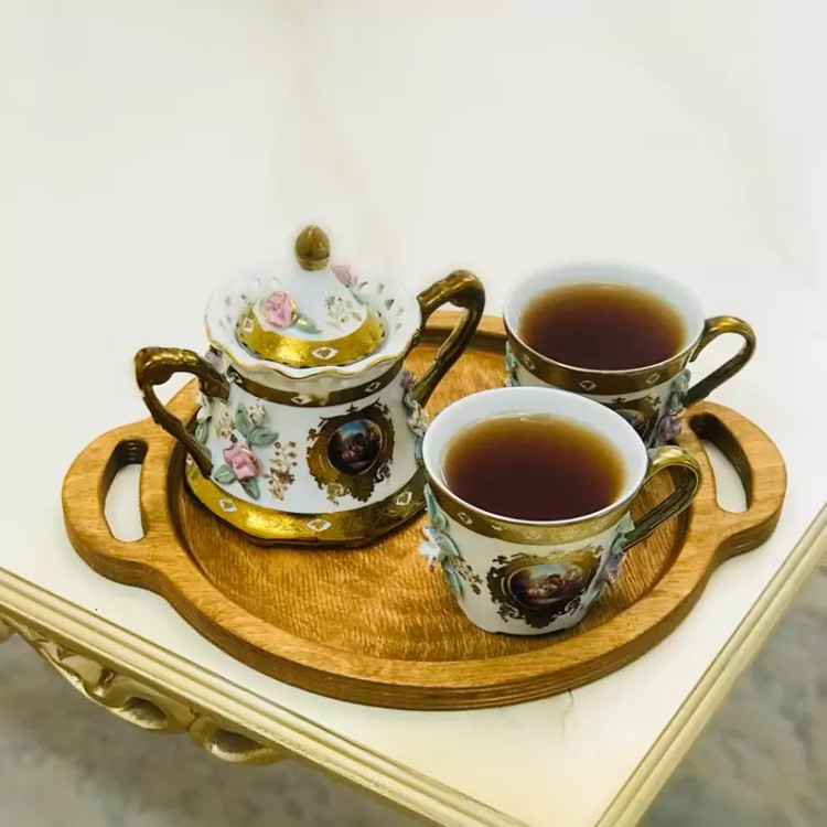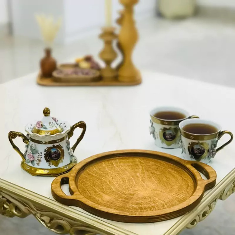 سینی پذیرایی چوبی گرد مدل سولان | ترکیب زیبایی و کارایی در پذیرایی