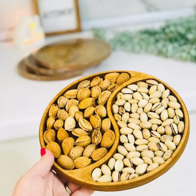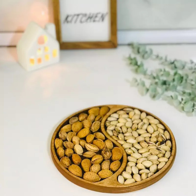 این ظرف دوقسمتی با طراحی مدرن و مینیمال، مناسب برای سرو انواع ترشی، زیتون، مزه، شکلات، خشکبار و حتی پیش غذاهای کوچک است.