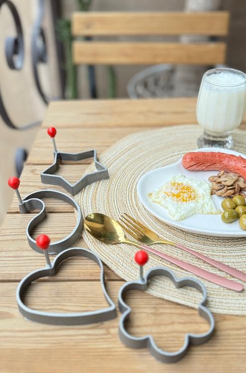 این محصول شامل 4 عدد قالب چدن با طرح های متنوع (مثل گل، قلب، ستاره و...) هست که به شما کمک میکنه کوکو، کتلت، نیمرو، پنکیک و حتی تخم مرغ عسلیتون رو با فرم خاص و زیبا درست کنین.