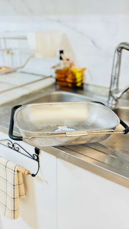 آبکش استیل روی سینک با دسته های قابل تنظیم، طراحی شده تا این کار را برای شما راحت تر، بهداشتی تر و بدون ایجاد بی نظمی در آشپزخانه انجام دهد.
