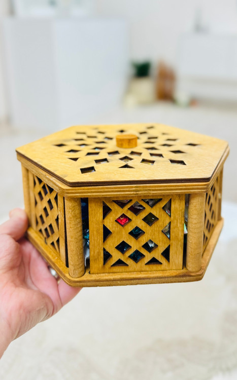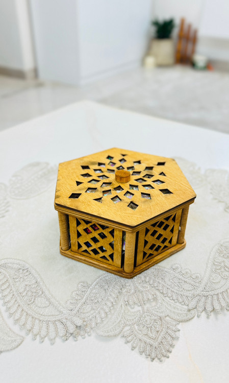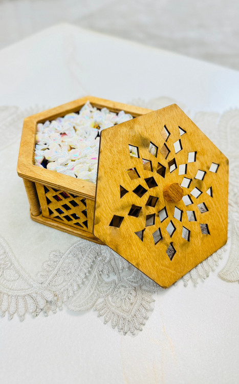 درب شش ضلعی با طرح های برش خورده دقیق، علاوه بر زیبایی، باعث تهویه ملایم داخل ظرف هم میشه و به حفظ طراوت شکلات یا خشکبار کمک میکنه.