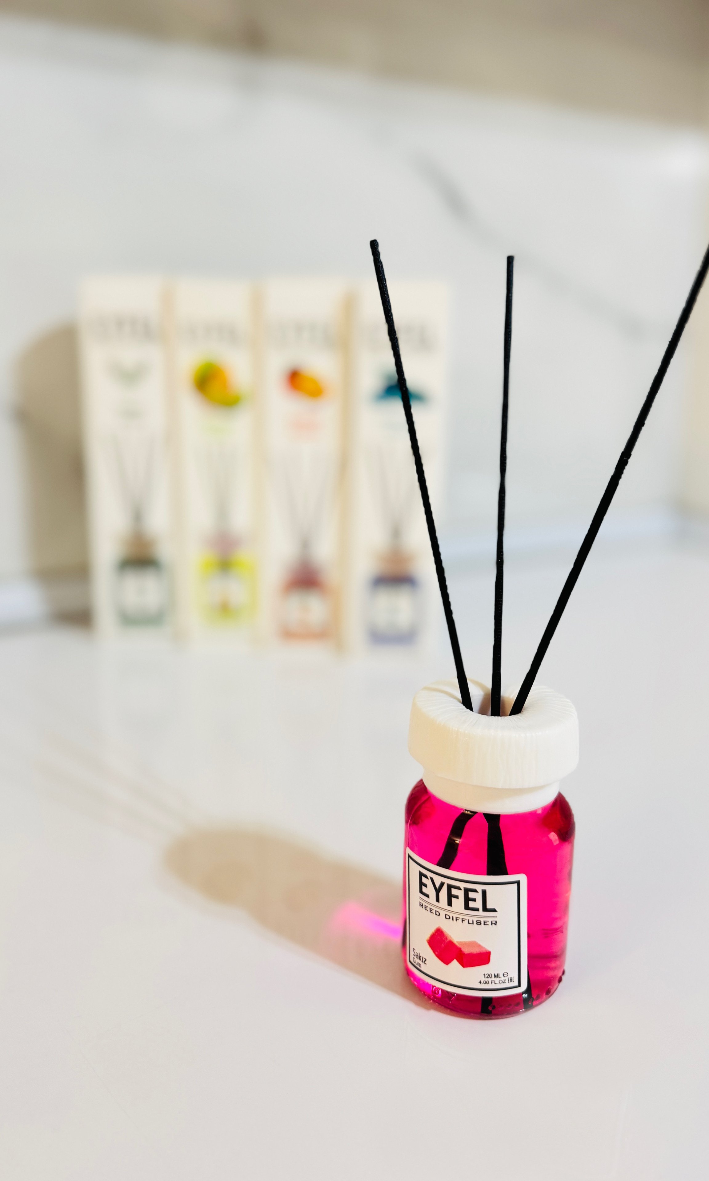 ظرف: شیشهای/ محتویات: مایع خوشبوکننده (Reed Diffuser) / چوبها:الیاف چوبی مخصوص پخش بو