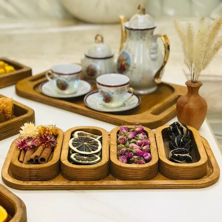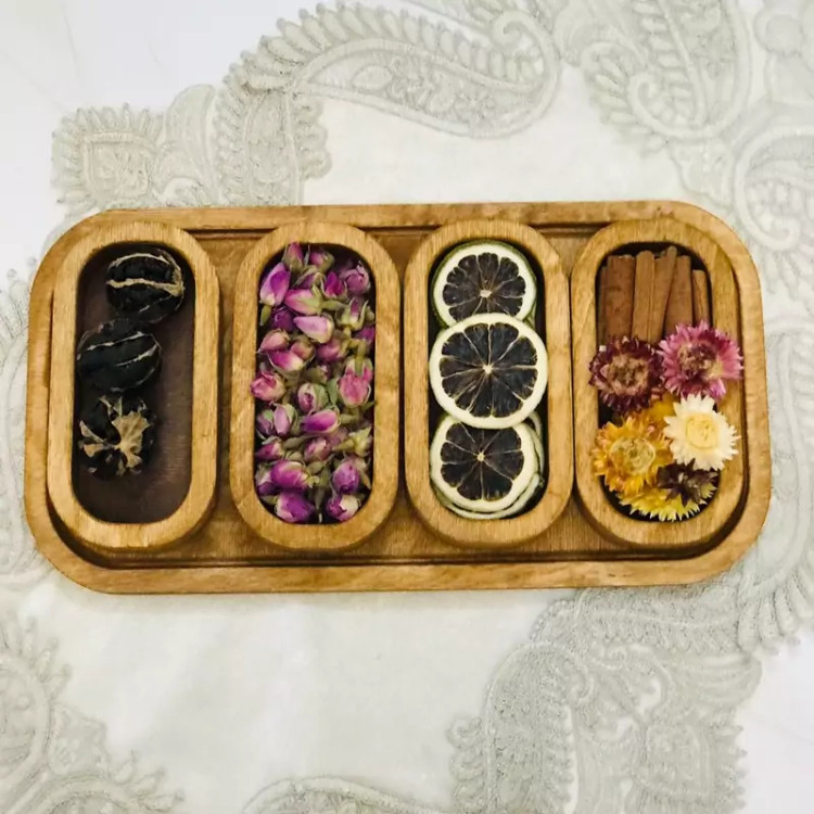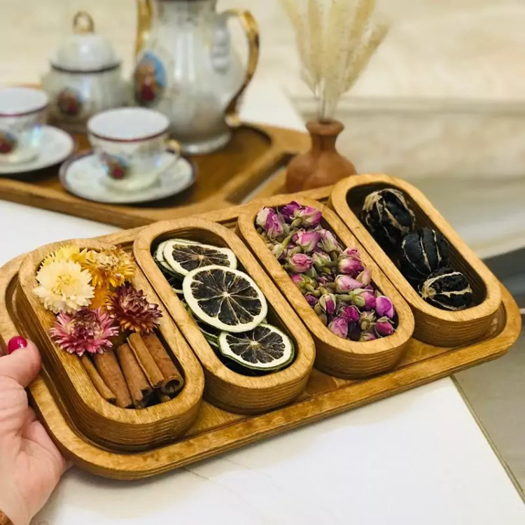 این محصول از چوب طبیعی و با کیفیت ساخته شده و طراحی منحصربه فرد آن با پنج بخش مجزا، نظم و تنوع را به پذیرایی شما میآورد.