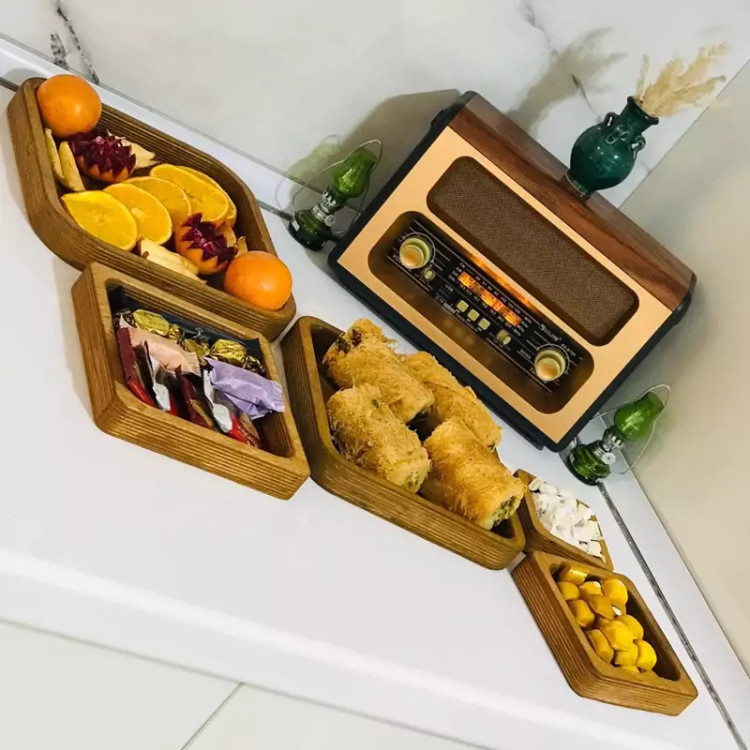 همه ی ظروف از چوب پلایوود با کیفیت بالا ساخته شدن که علاوه بر زیبایی طبیعی، مقاومت خوبی هم در برابر استفاده روزمره دارن.